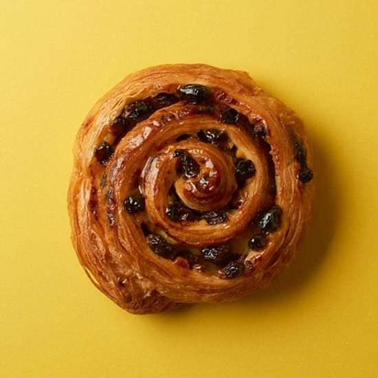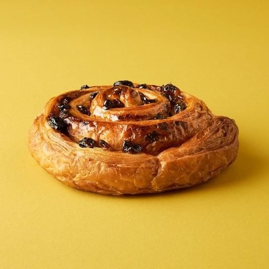 ぐるぐる巻きのエスカルゴ型はフランスの定番。オーガニックレーズンに自家製パティシエール(カスタードクリーム)を合わせました。