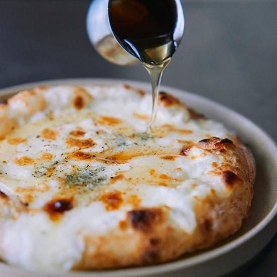 [生地] – 日本製粉/ブリリアント(強力)60% – 日本製粉/ジェニー(準強力)20% – 鳥越製粉/そめいよしの(強力)20% [具材] – イタリア産モッツアレラチーズ(Euro・Pomella モッツァレッラ・フィオル・ディ・ラッテ IQF) – 北海道乳業/クリームチーズ リュクス – チェスコ株式会社/ゴルゴンゾラピカンテ イゴール – イタリア産パルミジャーノレッジャーノ – はちみつ